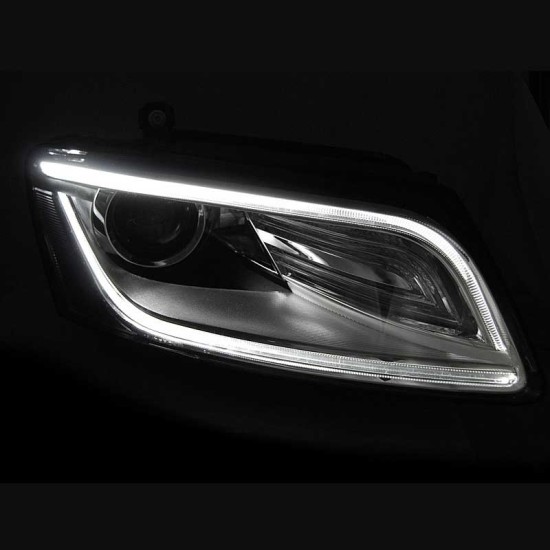 Μπροστινά Φανάρια Set Για Audi Q5 8R 12-17 TRU DRL Led Tube Χρωμίου H7/H7 Με Μοτέρ Depo