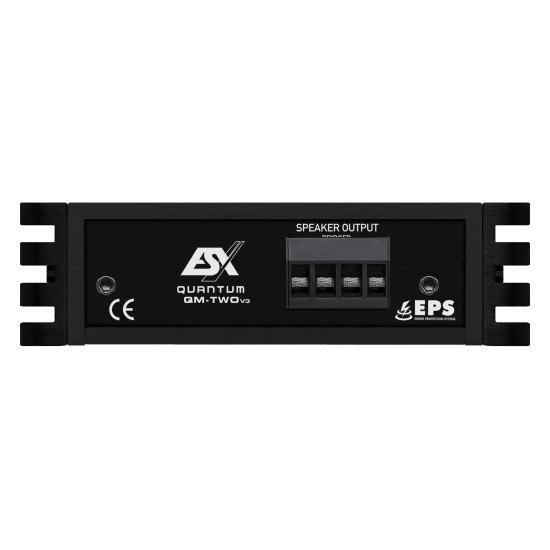 The QM-TWOv3 is very well equipped. The often required high-level inputs with plug-in mini-molex connectors and automatic switch-on are equipped with proven EPS® technology. This makes it possible to integrate the QM-TWOv3 into modern vehicles with factory systems and loudspeaker diagnostic systems without errors occurring in the on-board electronics. In addition, ESX does not do without classic cinch inputs: The QM-TWOv3 can also be connected directly behind DSPs or high-end radios at any time.FeaturesEfficient Class D Amplifier with ultra-compact Dimensions